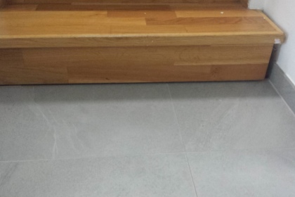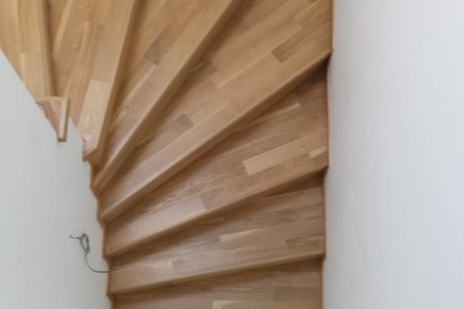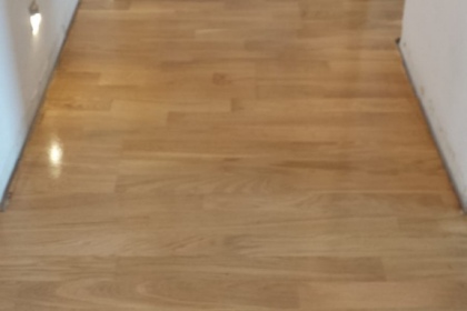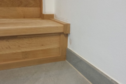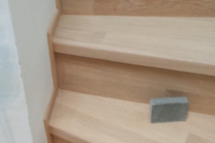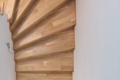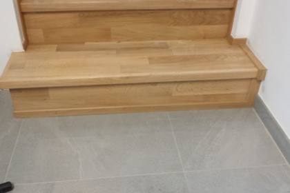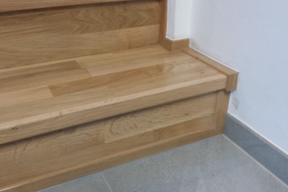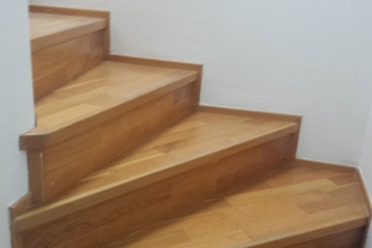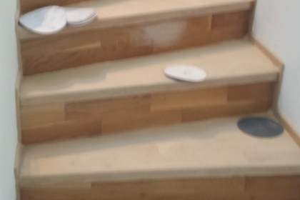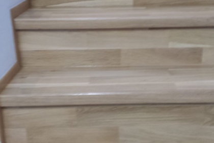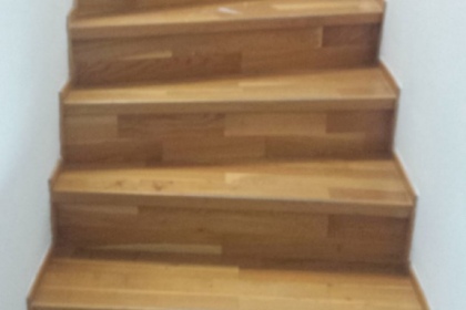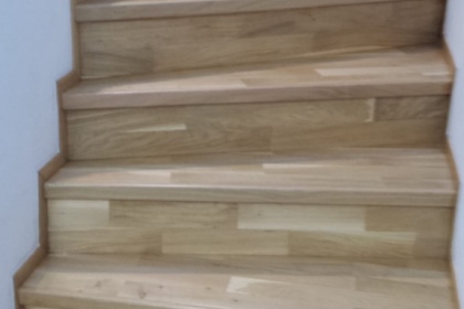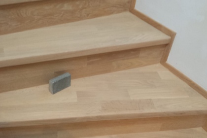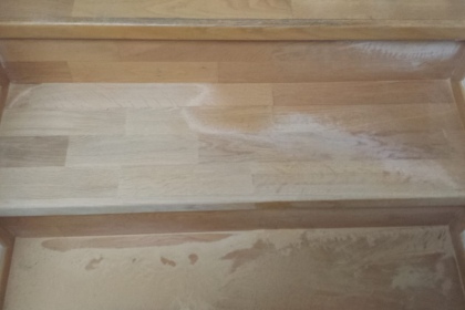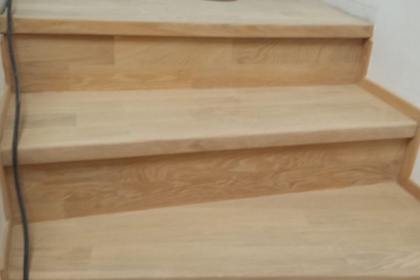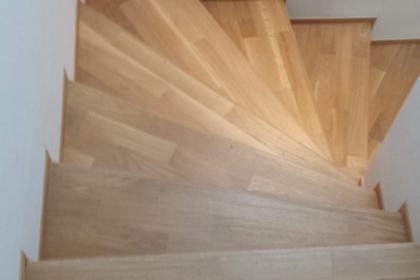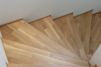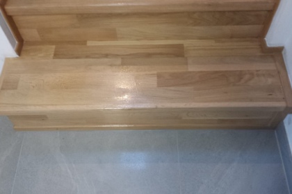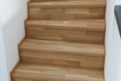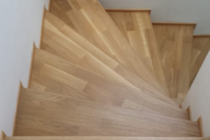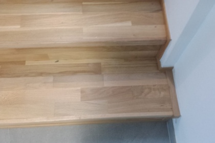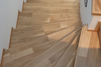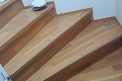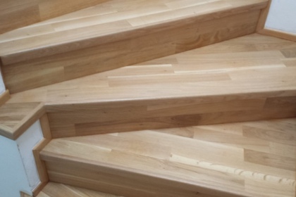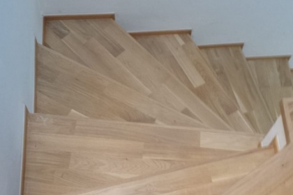 Oprava a renovace vrstvené dřevěné podlahy na schodech a v chodbě