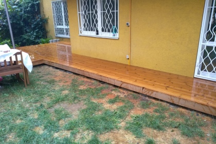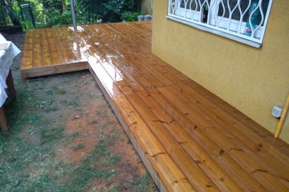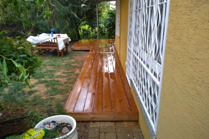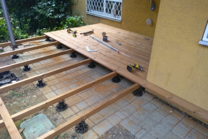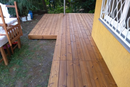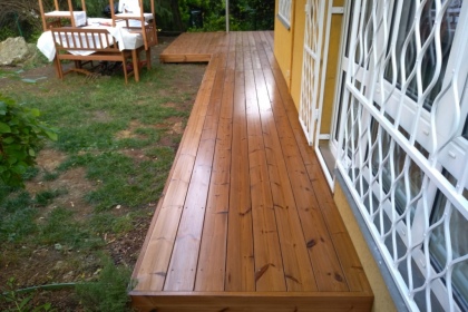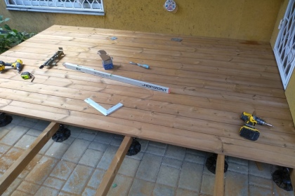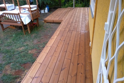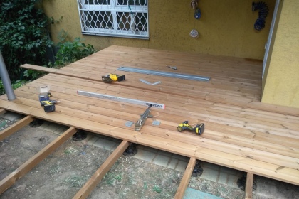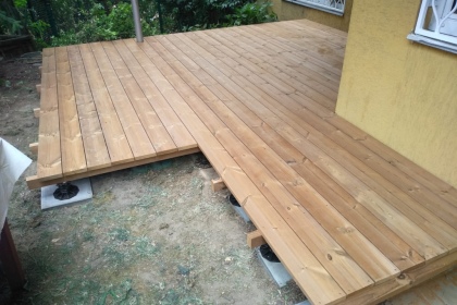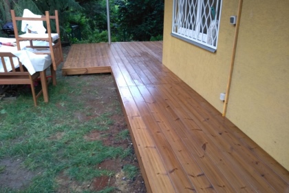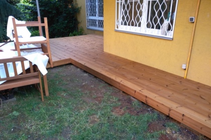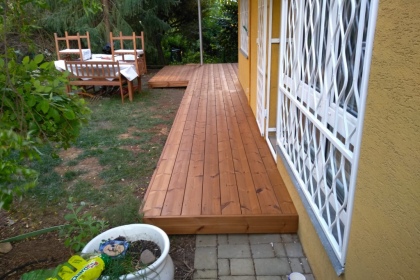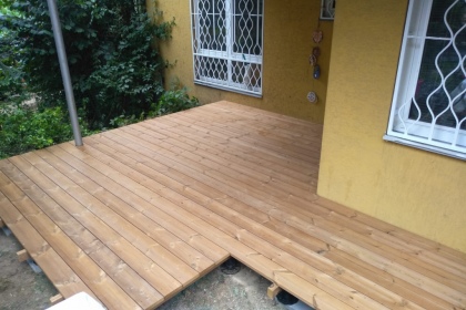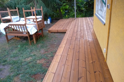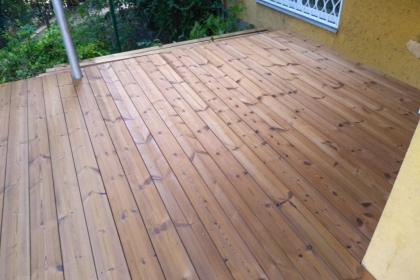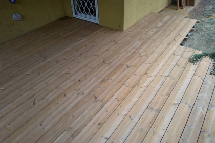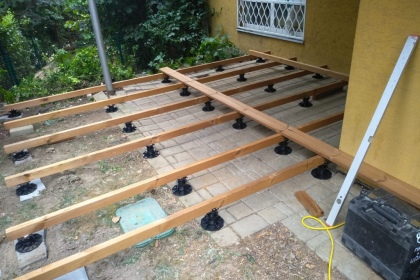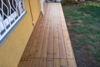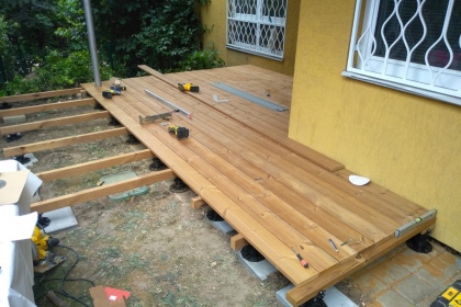 Na níže uvedených fotkách můžete vidět, jak naše firma Podlahy Praha provádí renovaci venkovní terasy.